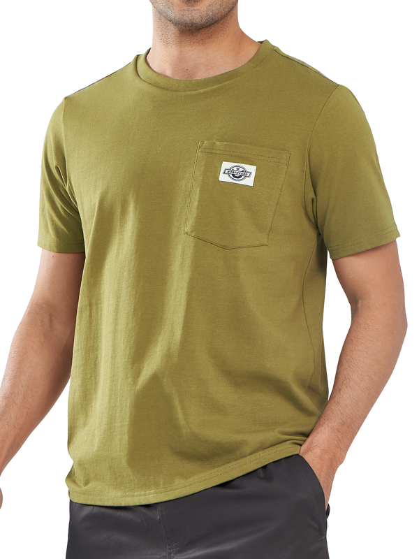 Men's Cotton Crewneck Tee Shirts with Pocket Short Sleeve for Outdoor
