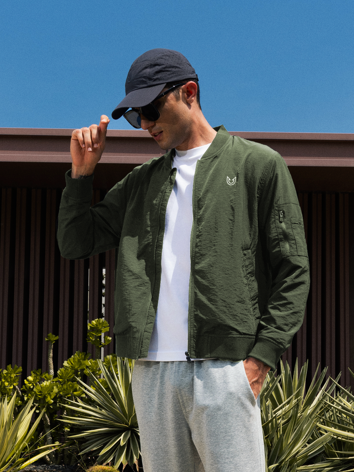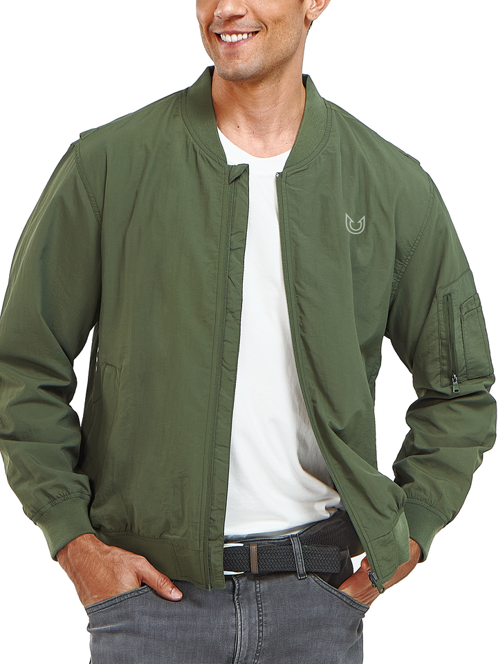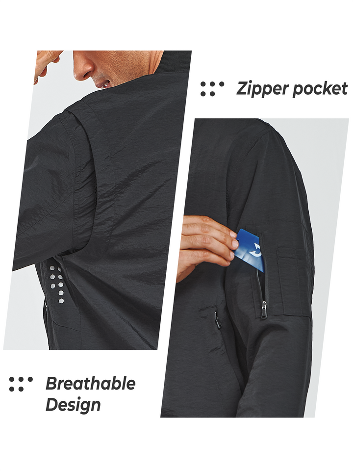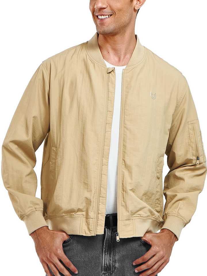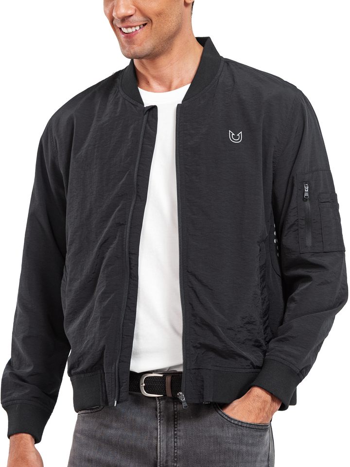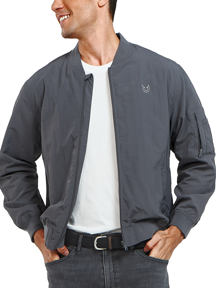 Men's Bomber Jacket Lightweight Casual Windbreaker Zip Up Windproof