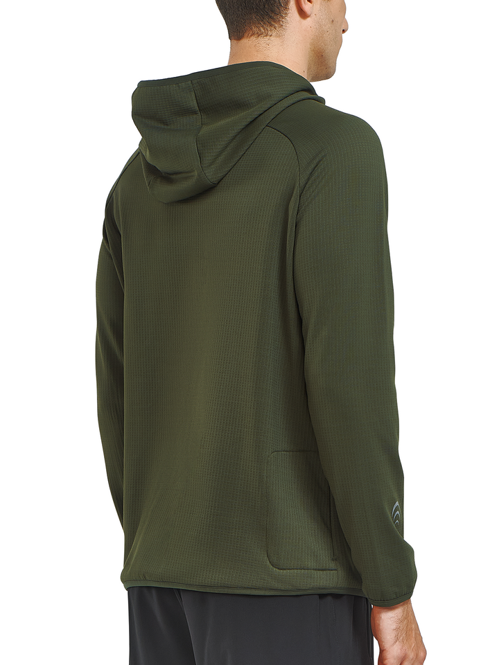 Lightweight fleece performance fabric that is soft, warm, stretchy, and breathable for unrestricted movement.