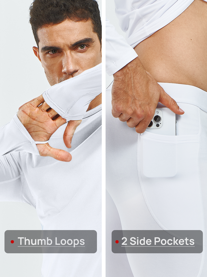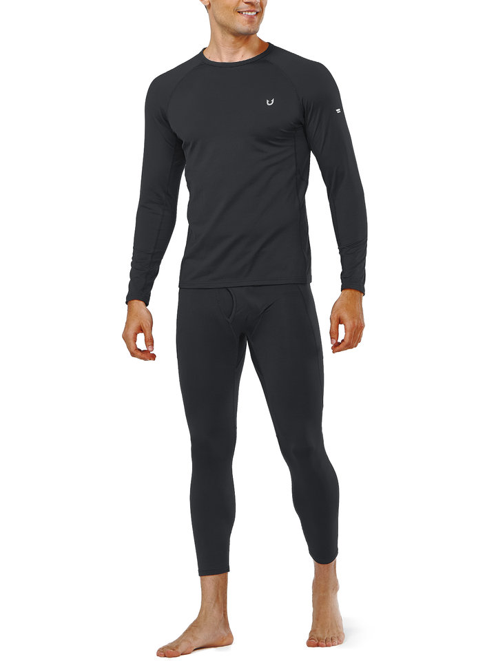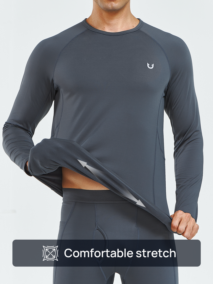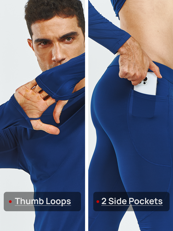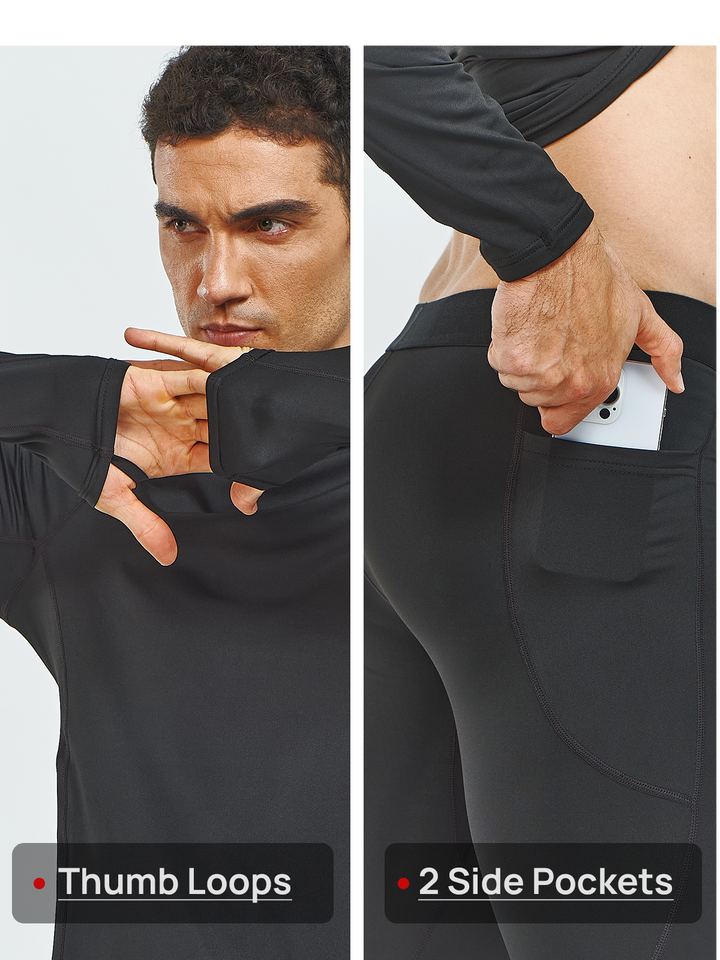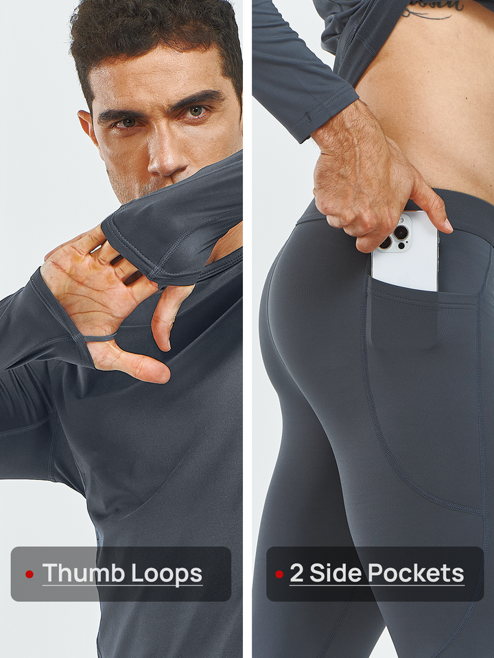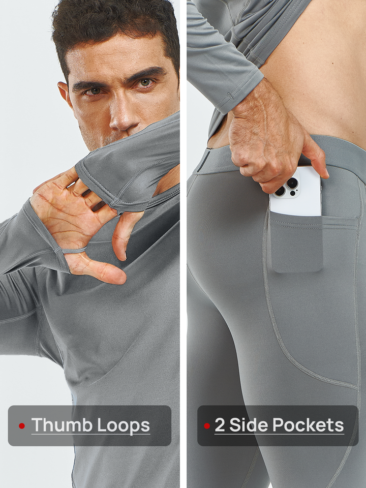 Men's Thermal Underwear Set Long Johns Fleece Shirts with Pockets
