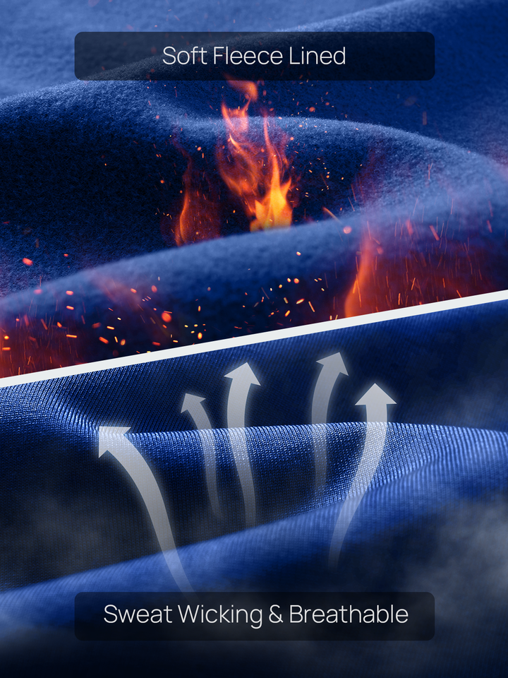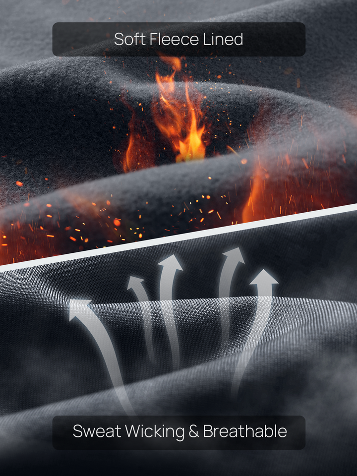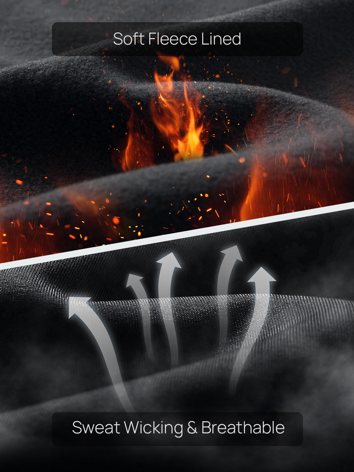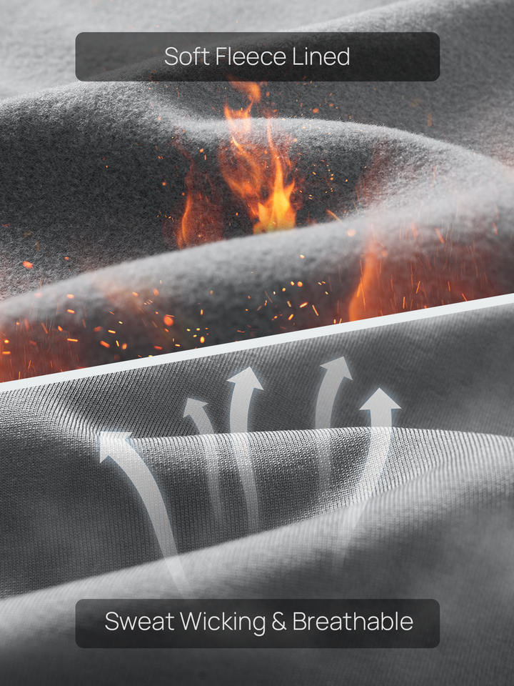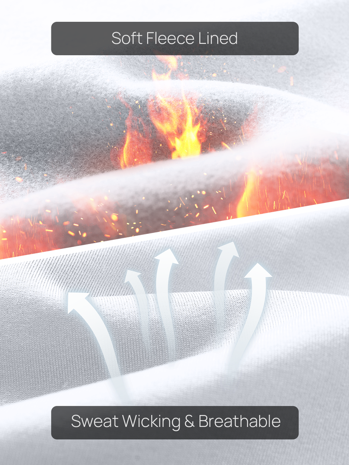Fleece-lined, ultra-soft fabric with heat retention technology keeps you warm and comfortable without overheating.
