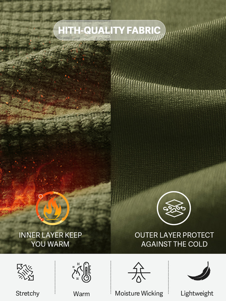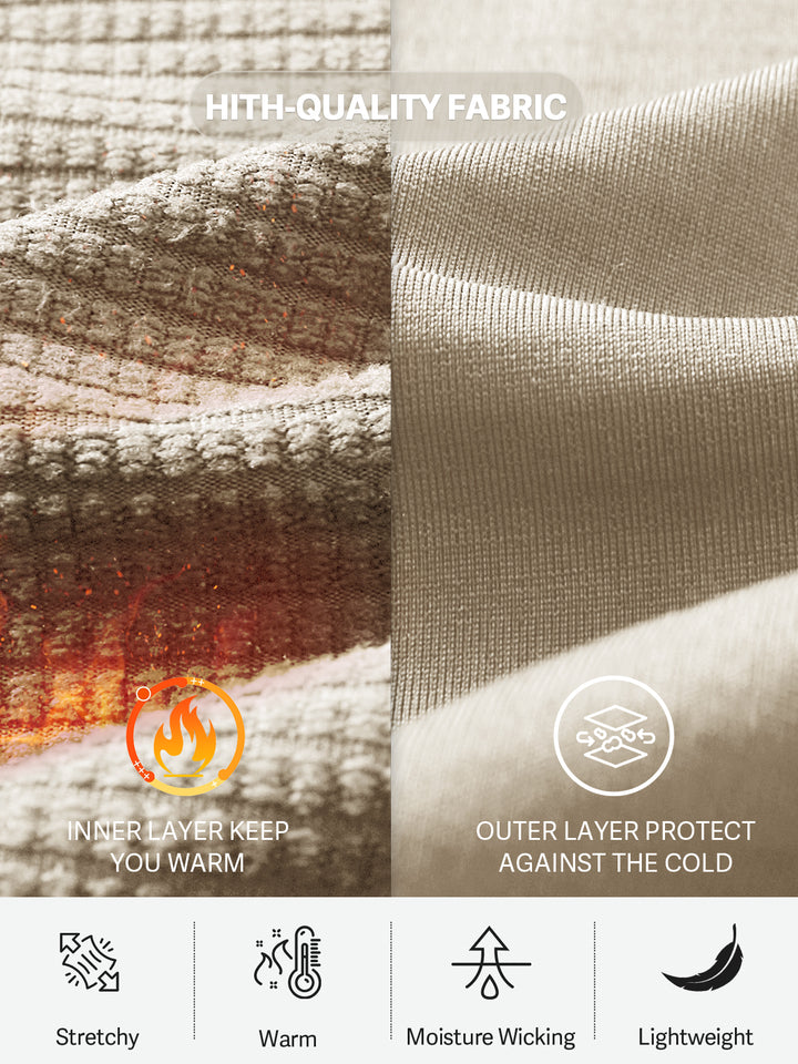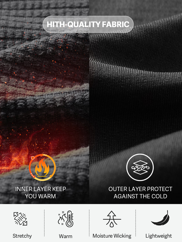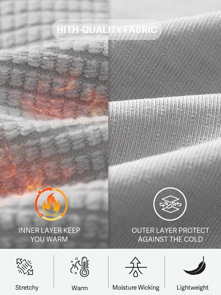 Lightweight, 4-way stretch fabric with moisture-wicking and breathable performance for cold-weather comfort.