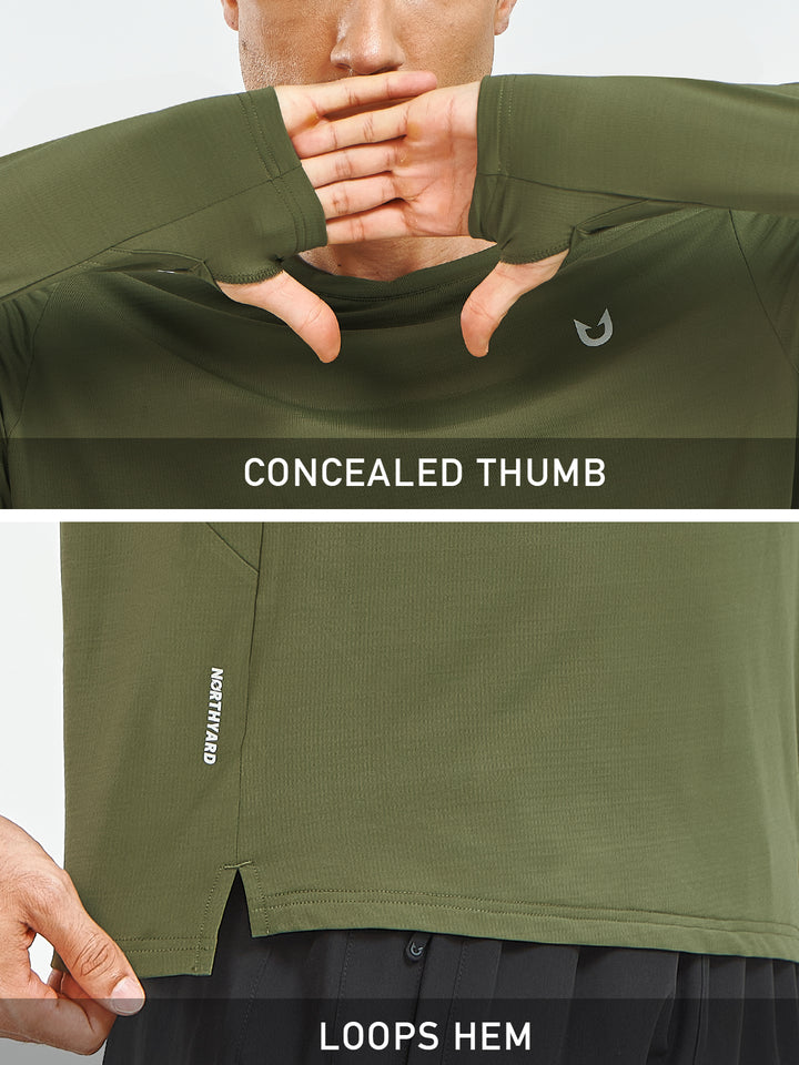Active Lifestyle Features: Thumb loops for added coverage and breathable fabric for enhanced airflow.
